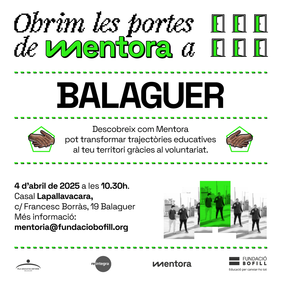 El Pla Educatiu d’Entorn de Terrassa i la Fundació Maria Auxiliadora, amb el suport de la Fundació Bofill, impulsen des del 2023 el programa Mentora, i convoquen una jornada per presentar aquesta iniciativa a qualsevol persona interessada en l’àmbit educatiu, especialment les docents, professionals educatius o socials, ciutadania interessada amb el voluntariat o associacions i entitats […]