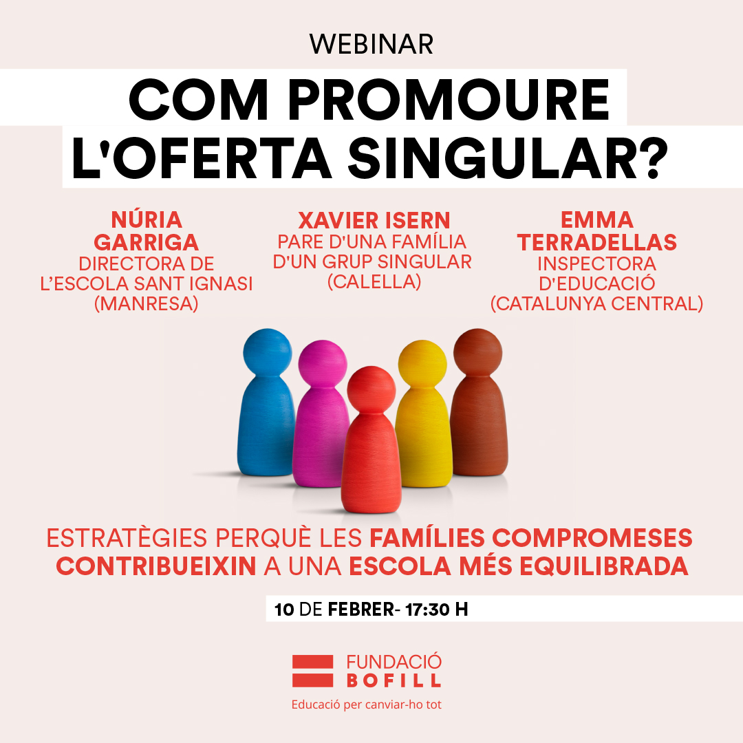 L’oferta singular és una política pública que té l’objectiu de facilitar que un grup de famílies sense situacions de vulnerabilitat, el que el sistema identifica com a “famílies ordinàries”, escolaritzin els seus fills i filles en centres amb més complexitat social. Una estratègia beneficiosa a tots nivells i positiva per a totes les famílies, que contribueix a millorar la diversitat social dels […]