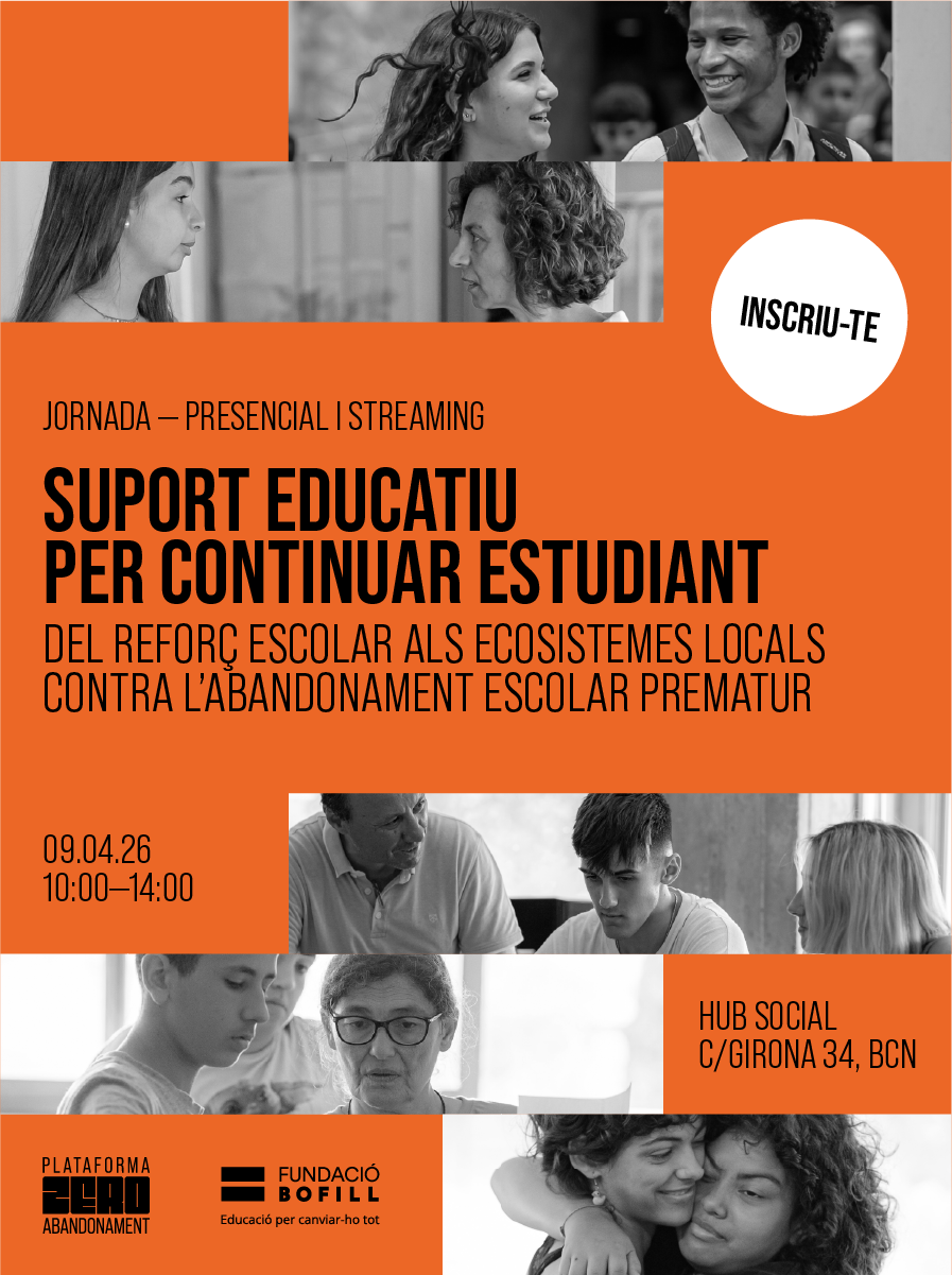 El pròxim 9 d’abril, la Plataforma Zero Abandonament de la Fundació Bofill organitza al Hub Social de Barcelona la jornada “Suport educatiu per continuar estudiant: del reforç escolar als ecosistemes locals contra l’abandonament escolar prematur”, un espai de trobada i treball entre municipis, centres educatius i agents comunitaris. La jornada parteix d’una constatació cada cop […]