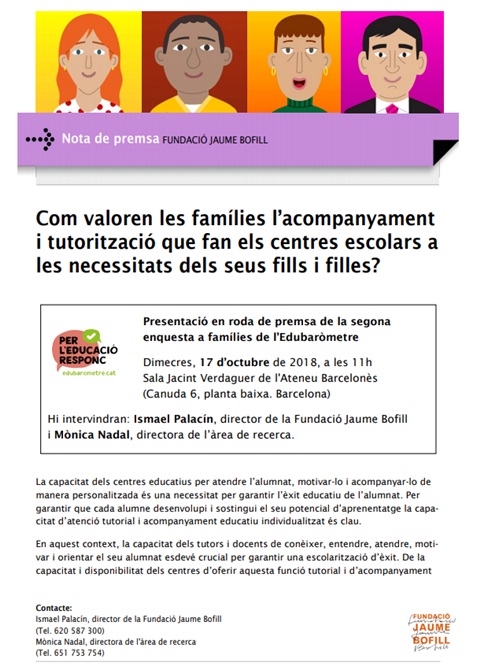 Convocatòria de premsa: Com valoren les famílies l’acompanyament i tutorització que fan els centres escolars a les necessitats dels seus fills i filles?