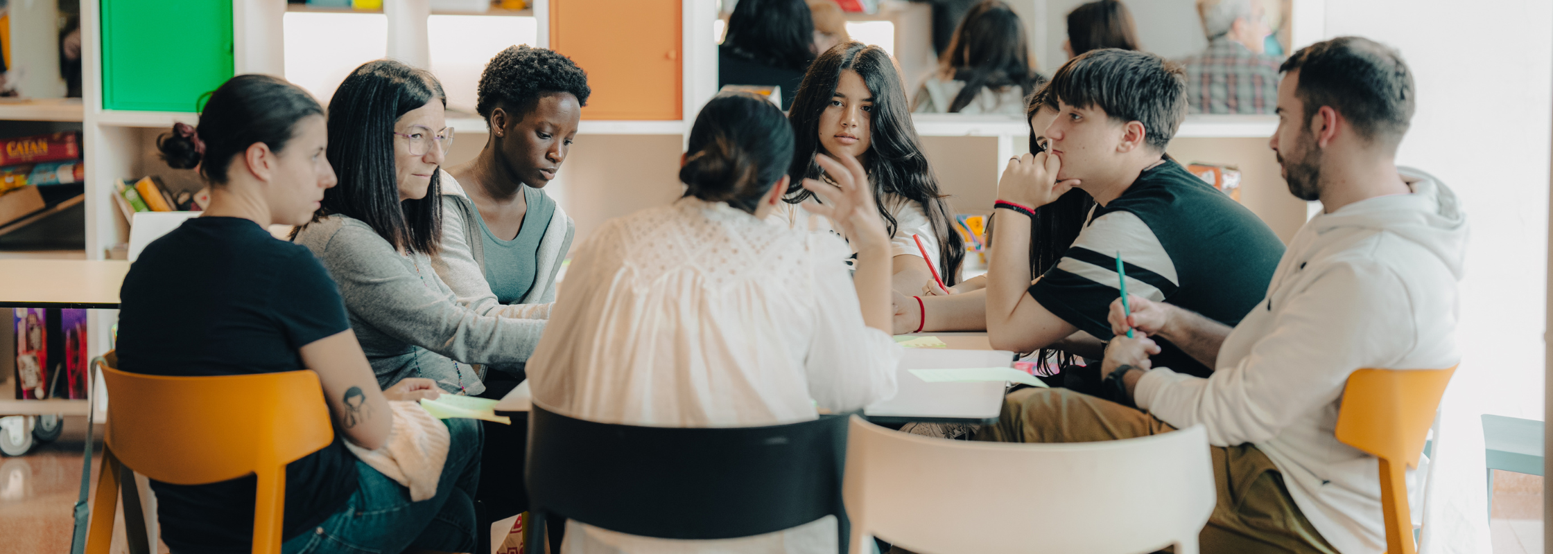 Des del Programa Mentora i en el marc de l'estratègia Zero Abandonament, amb la cooperativa + Educació, hem creat els Tallers Ombres de Colors, basats en el còmic de l’Oriol Malet. Aquest recurs consisteix en sis tallers per a joves de 3r i 4rt d’ESO que funcionen tant de manera independent com en forma d’itinerari, amb l’objectiu de donar la veu i obrir debat entre adolescents per escoltar les seves vivències, postures i inquietuds.