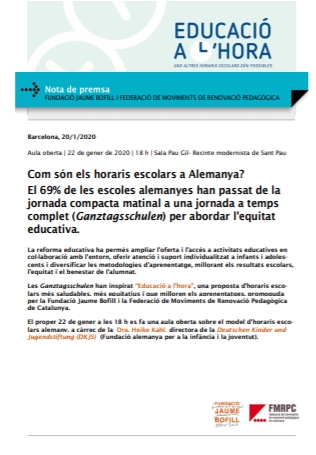 Educació a l’hora: una proposta d’horaris escolars per a una educació equitativa i integral
