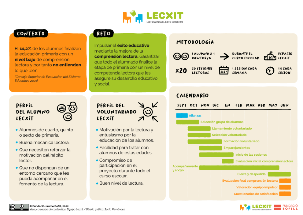 LECXIT es uno de los programas más veteranos de la Fundació Bofill, con más de 12 años de recorrido. Desde el proyecto tenemos el reto de garantizar que todo el alumnado finalice la etapa de primaria con un nivel de competencia lectora que les asegure su desarrollo educativo y social.