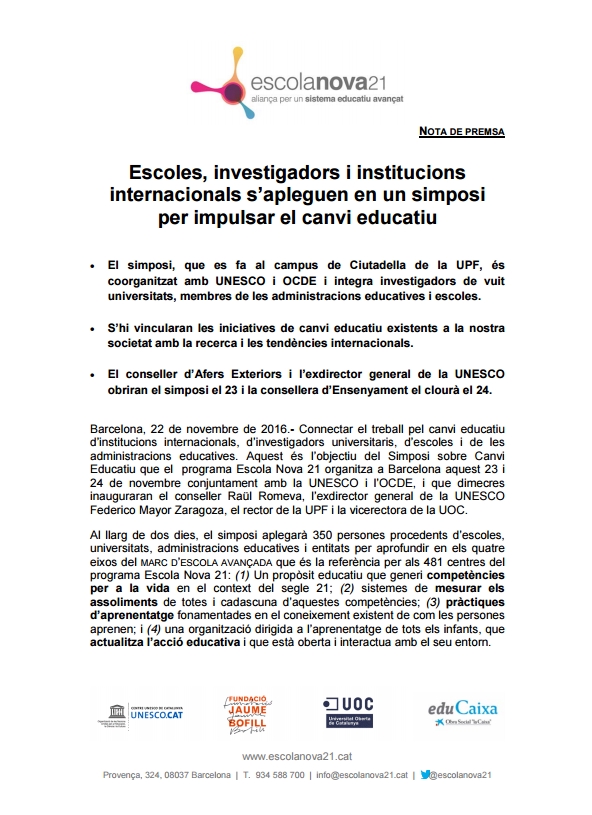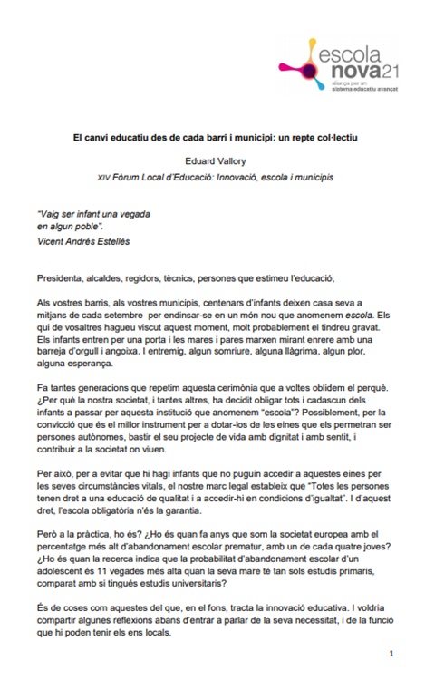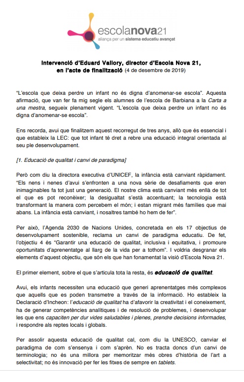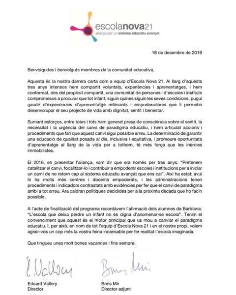 La finalitat d’Escola Nova 21 ha estat catalitzar la voluntat de