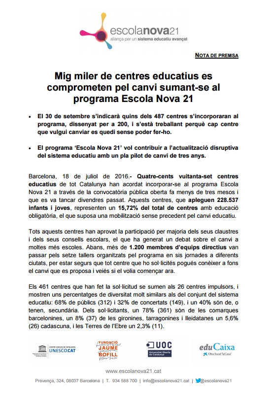 Escola Nova 21 ha estat una