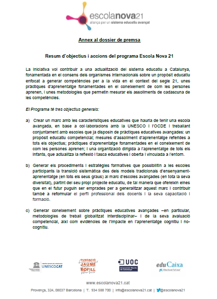 L’avaluació del programa Escola Nova 21 es pot trobar aquí.