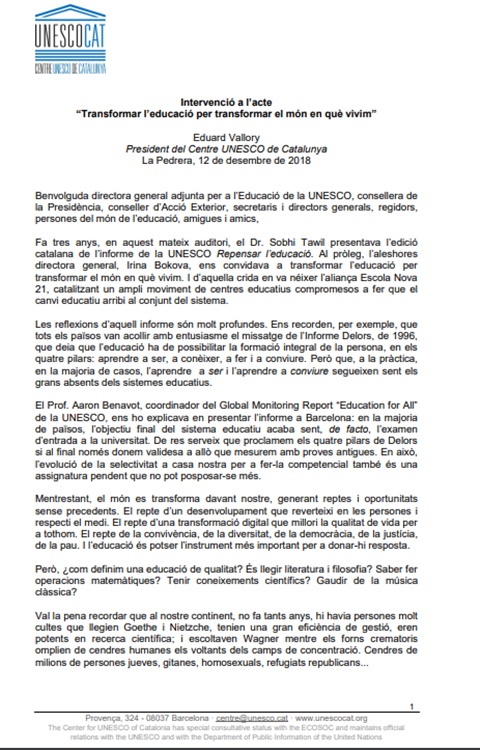 ODS 4, i a la crida de la UNESCO per la participació de tots els sectors en un procés inclusiu per possibilitar el canvi de paradigma educatiu. L’objectiu d’aquest canvi és que tot infant, independentment del seu context i condicions, pugui gaudir en qualsevol centre del Servei Educatiu de Catalunya d’experiències d’aprenentatge empoderadores i rellevants que li permetin desenvolupar el seu projecte de vida amb dignitat, sentit i benestar i contribuir als reptes col·lectius.