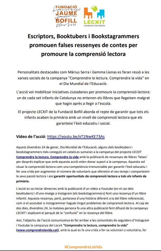 “Invertir en lectura vol dir invertir en la construcció de societats intel·ligents i preparades, capaces de fer front als reptes de futur”