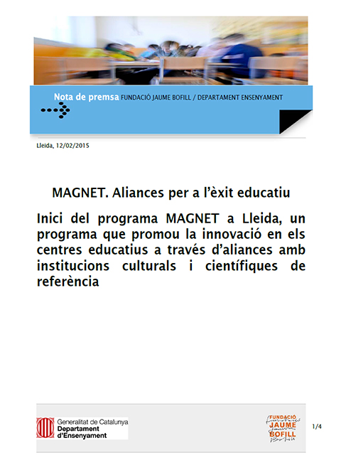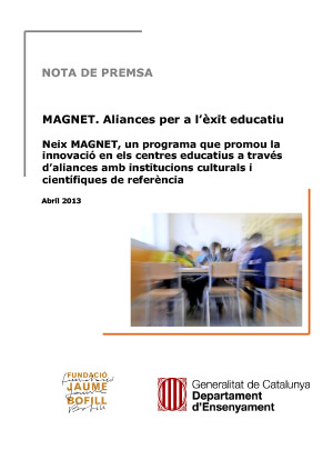 A partir de l’anàlisi del model de les magnet schools dels Estats Units, s’ha desenvolupat un programa a Catalunya que promou la innovació en els centres educatius a través d’aliances amb institucions culturals i científiques de referència. Actualment s’està realitzant una prova pilot en set centres educatius, sis escoles i un institut.