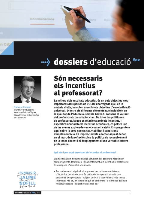 - És recomanable implantar incentius salarials per al professorat vinculats amb el rendiment acadèmic dels estudiants? – Què funciona en educació – Fundació Jaume Bofill (J. Oriol Escardíbul, 2015)