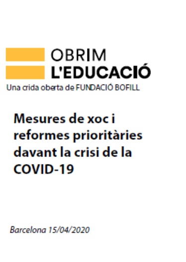 Obrim l’Educació és la resposta de la Fundació Bofill a aquesta necessitat i oportunitat compartida. Un projecte que vol que la crisi de salut que estem vivint no generi una crisi educativa. Per a fer-ho volem obrir les nostres propostes i idees a tota la comunitat mitjançant: