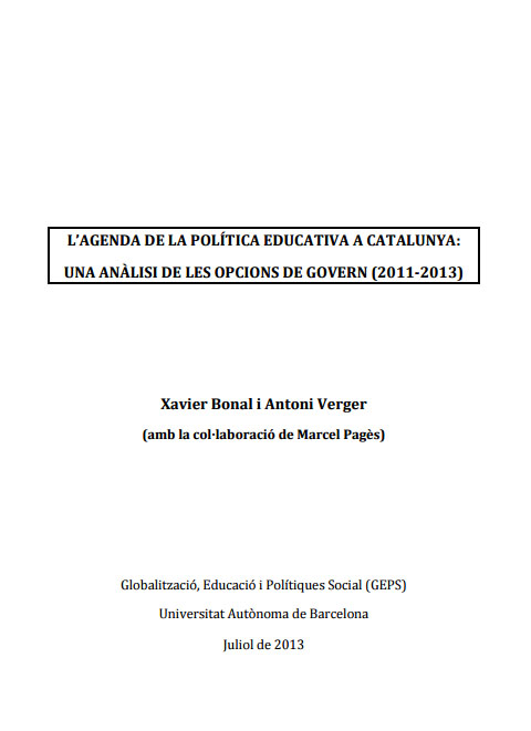 L’agenda de la política educativa a Catalunya: una anàlisi de les opcions de govern (2011-2013)