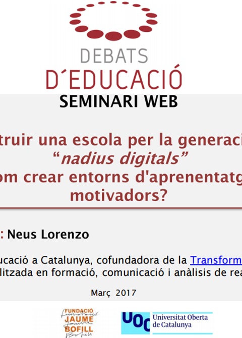 CANVI DE DATA: 10/11/16 Acte exclusivament online Accés gratuït i en obert a: www.debats.cat Podeu participar via Twitter: #debatseducacio Aquest webinari virtual és continuïtat de la trobada amb el professor Ross Flatt als Debats Educacio del 18/04/2016: Revolucionar l’escola des del Design Thinking i el Joc […]